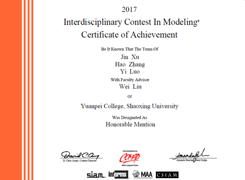 我院学子在2017年美国大学生数学建模竞赛再获佳绩