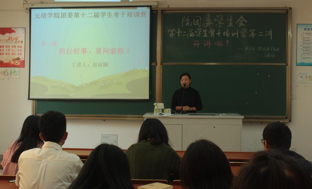 2018年10月24日,院团委学生会迎来了学生骨干培训第二讲:但行好事,莫问前程!此次学生骨干培训的主讲人是赵丽颖老师。