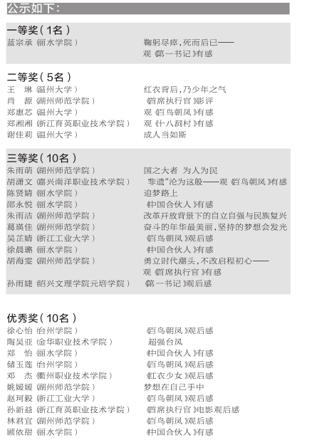 我院学子在“改革印记 青春光影”浙江高校国产优秀电影评论大赛中喜获佳绩