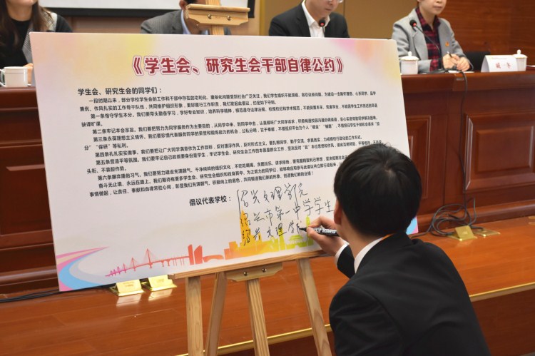 大会审议并通过了关于增补绍兴文理学院研究生会为绍兴市联合会第四届委员会委员团体的提议并聘任学联四届委员会新主席。学联第四届委员会作了题为《青春心向党 筑梦新时代 团结带领青年学生以优异的状态和成绩迎接新中国成立70周年和五四运动100周年 》的工作报告。市学联驻会主席传达了省学联九届三次全会精神。各大中专学校的学生会主席签署了《学生会、研究生会干部自律公约》。