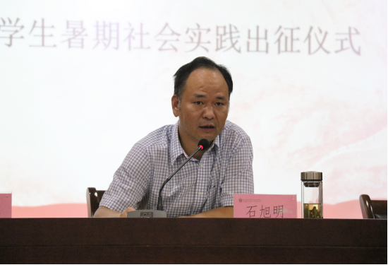 7月3日下午,我院2019年大学生暑期社会实践出征仪式在红色学府报告厅隆重举行,院党委副书记石旭明出席仪式。学院相关职能部门负责人、各分团委书记以及暑期社会实践团队带队教师、队员代表近200余人参加了出征仪式。