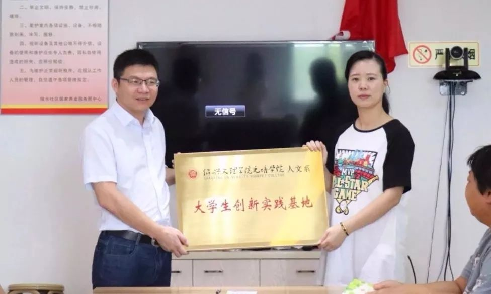 为了让社区群众对普通话产生兴趣,实践团队带来了精彩的个人表演。作为第一个出场的成员,滕渤元同学为社区群众带来了声情并茂的诗朗诵,在传承诗歌文化的同时也号召人们学好普通话。李海佳同学更是准备了有趣的成语故事,为了更好的说明普通话的优点,她在讲述的过程中加入了很多个人见解,妙趣横生。最后,潘成刚书记与陈利老师就推普等问题发表了自己的看法,鼓励社区的老人们要“活到老,学到老。”听完二位老师的讲解,居民们向实践团队提出自己的问题,队员也耐心地给予回答。最后,潘成刚书记代表绍兴文理学院元培学院语言文学分院与镜水社区举行了“大学生创新实践基地”授牌仪式。
