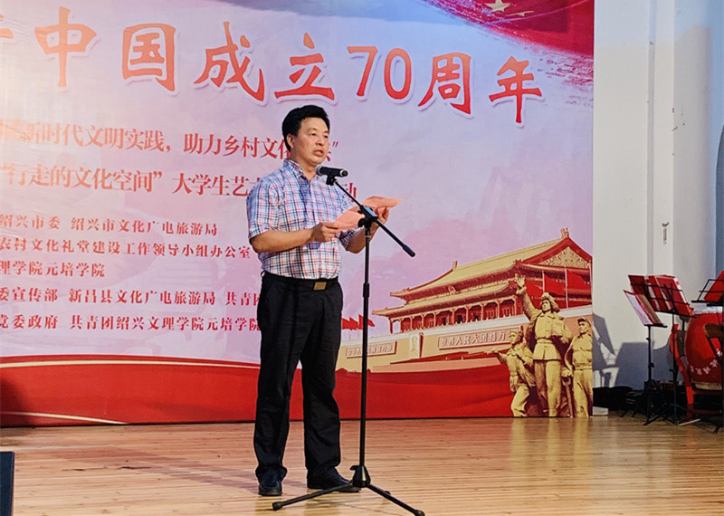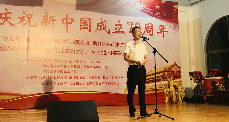 7月26日,学院大学生艺术团暑期社会实践团队“行走的文化空间”在浙东唐诗之路另一个概念首倡地和精华主阵地新昌儒岙镇横板桥村开启文化下乡第三站。学院院长沈红卫、党委副书记石旭明,新昌县人民政府副县长吕田,新昌县儒岙镇党委书记求雪军,共青团新昌县委书记孟黎,绍兴市委宣传部宣教处副处长沈露斌,团绍兴市委基层部副部长史永军,共青团新昌县委副书记俞海丽及新昌县委相关部门、村镇负责人等出席活动。横板桥村近350余名村民观看了本次巡演晚会。