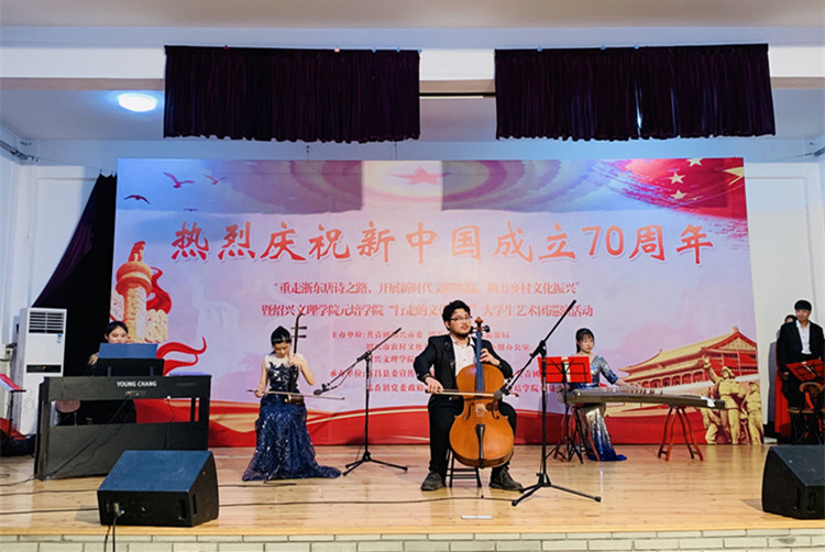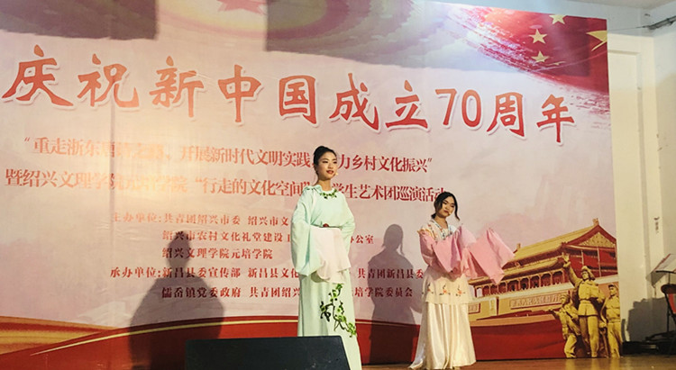 中原崛起,中华复兴,通过此次暑期社会实践的巡演活动,学院大学生艺术团的青年团员学生们牢记初心,不忘使命,用自己的青春和激情,勇担振兴乡村文化的责任。我们将继续相约在年轻的时代潮头,共同点燃历久弥新的信心灯塔。任风雨洗吹,时光荏苒,从江南杨柳岸走来,一路追寻浙东唐诗之路上的足迹,传承诗路文化,助力乡村振兴,为新中国成立70周年喝彩,为神州华夏祝福。