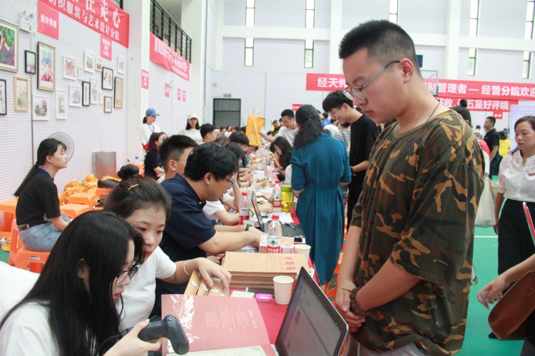 在迎新现场,来自纺织服装与艺术设计分院的高颜值“神仙姐姐”迎新志愿者们结合自身专业特长,提前在新生报到处布置背景墙,将迎新前就收到新生的画作分别布置在背景墙上,并制作了《2019级新生家长温馨提醒》资料单,通过家校联动有效指导新生尽快适应大学学习和生活。此外,在暑假期间,志愿者们还提前搭建了年级QQ群和微信群,加强新生与学校、新生与新生之间的互动。