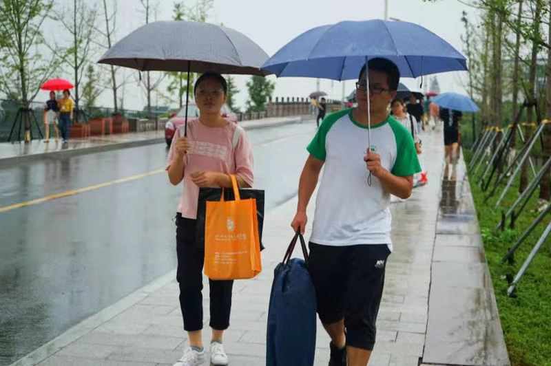 迎新期间,身着绿色志愿者T恤衫的建筑工程分院“绿巨人”们在接待大本营有条不紊地开展迎新工作。绵密的喜雨浇不灭志愿者们如火的热情,他们纷纷冒雨来回在校园奔波,为新生和家长办理各项手续,帮助新生们顺利完成报到流程,让新生和家长切实感受到分院大家庭的温暖。