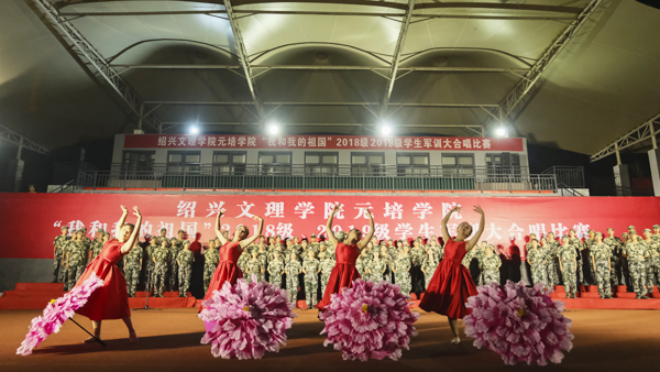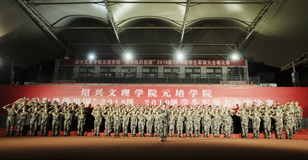 军训是一种拼搏,一种较量,一种坚强的拔节,军歌就是军训中美丽的点缀。比赛现场,同学们军姿严整,精神饱满,平日里训练场上的整齐步伐演绎成了振奋人心的青春旋律。《强军战歌》《在灿烂的阳光下》《保卫黄河》《当那一天来临》《英雄宣言》等一首首军歌、红歌唱出了坚韧执着、唱出了激情豪迈,满腔热情的红色经典诗朗诵、形式多样的队形变换、精心编排的舞蹈表演,各个比赛队不仅展露了学员们嘹亮的歌声 ,更展现了元培学子的青春风貌。经过激烈的角逐,来自信息与机电工程分院的第12连荣获大合唱比赛一等奖。比赛最后,在合唱团常驻指导曹敏老师的指挥下,学院大学生合唱团在牛路老师的领唱下,全场合唱歌曲《我和我的祖国》,用歌声献礼新中国70年华诞,献给我们的祖国母亲!比赛在全体师生充满拳拳爱国之情的歌声中圆满落幕。