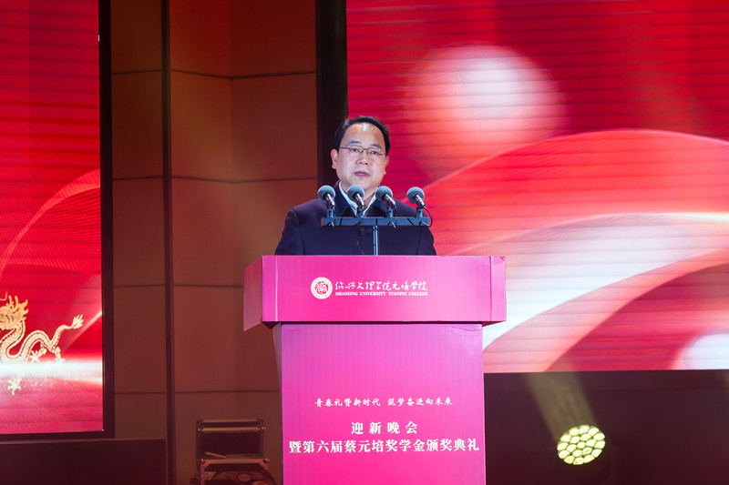 12月28日晚,学院“青春礼赞新时代,筑梦奋进向未来”迎新晚会暨第六届蔡元培奖学金颁奖典礼在国际文化交流中心报告厅举行。学院党政班子成员与500多位师生代表共同观看了晚会。