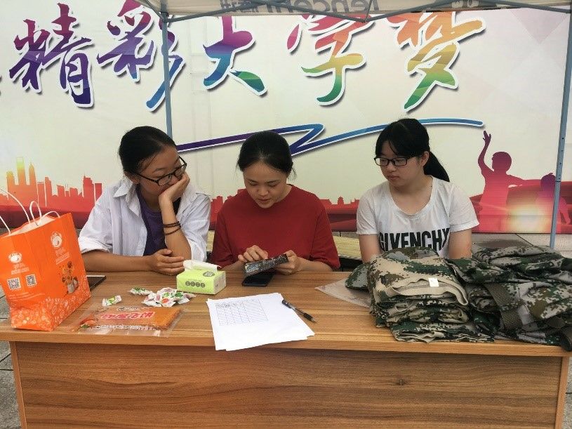 随着军训的结束9月7日我们在南北区食堂附近开展了军训服回收的活动,现场十分热闹。同学们拿着自己洗干净的衣裤,提着刷干净的鞋子,来到场地登记捐献,很多同学听到有捐赠的活动纷纷叫上身边的朋友,室友,就怕错过了捐赠时间。